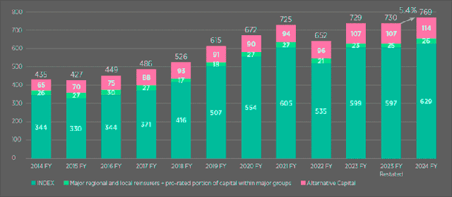 Це зростання відбулося завдяки як перестраховим компаніям з індексу Gallagher Re, які формують понад 80% капіталу, так і сегменту альтернативного non-life капіталу.