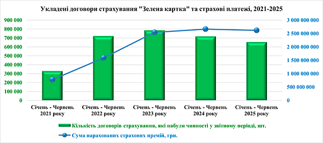Кількість полісів "Зелена карта" у 1 півріччі 2025 року зменшилася на 8,7%. Водночас сума страхових премій майже не змінилася, знизившись на 1,7%.