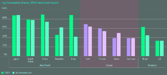 Водночас концентрація ринку послаблюється зі зростанням конкуренції.