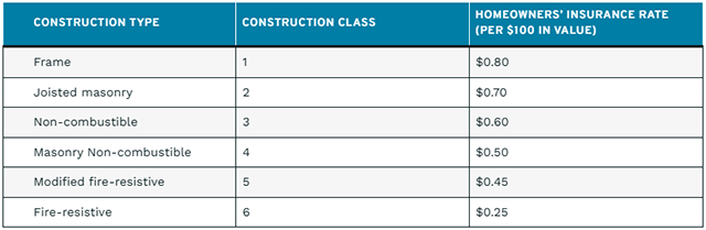Потім андеррайтер використовував дані з таблиці для розрахунку вартості ремонту на основі типу конструкції будинку та вартості заміни. Будинки, обладнані детектором диму або сигналізацією, або розташовані поблизу пожежної станції, отримували преміальні кредити, тоді як застосовані дебети підвищували тарифи для будинків з басейном, батутом або небезпечними домашніми тваринами на території.