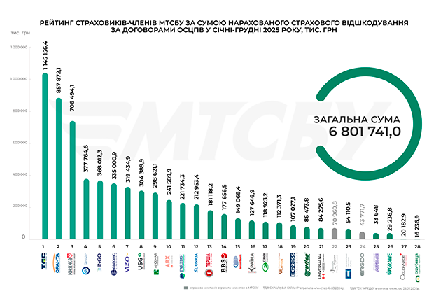 Водночас ці страхові компанії у 2025 році отримали та врегулювали найбільшу кількість вимог від потерпілих в ДТП: